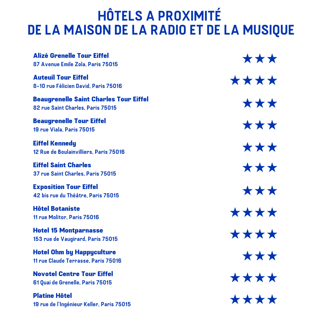 La Maison de la Radio et de la Musique remercie ses spectateurs et visiteurs d'anticiper les contrôles de sécurité aux entrées en se présentant 30 minutes avant le début des émissions et ateliers, 45 minutes avant les concerts.